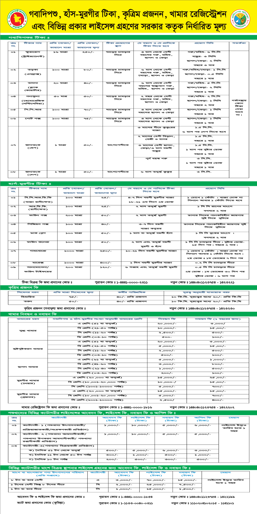 | ২ | ক) গবাদি পশু ও হাঁস-মুরগির টিকাবীজ সরবরাহ/বিক্রয় | ইউ.এল.ও/ইউ.এল.এ/ভি.এফ.এ | -ঐ- | মূল্য তালিকা মোতাবেক |