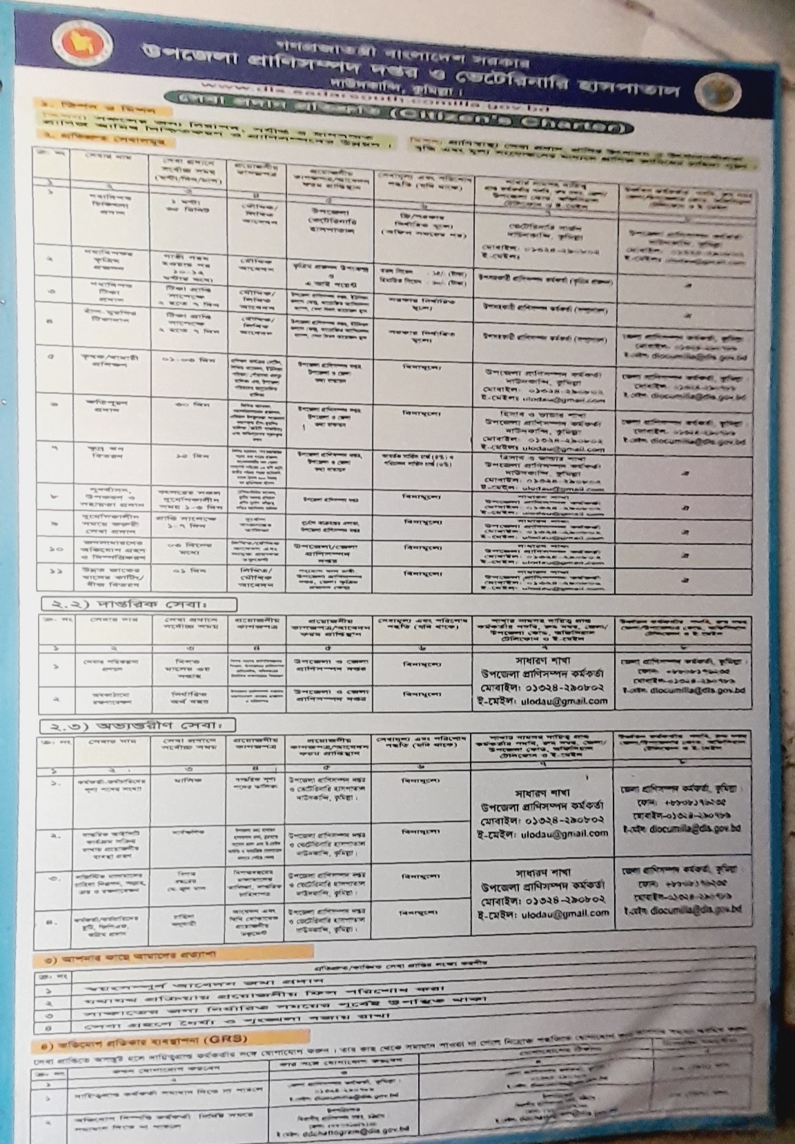 | ২ | দাপ্তরিক আইসিটি কার্যক্রম সক্রিয় রাখার প্রয়োজনীয় ব্যবস্থা গ্রহণ | সার্বক্ষণিক | উপজেলা তথ্য বাতায়ন হালনাগাদ রাখা,ব্রডব্যান্ড সংযোগ গ্রহণ এবং ই-মেইল আইডি ও সামাজিক যোগাযোগ মাধ্যমে পেইজ খোলা | উপজেলা প্রাণিসম্পদ দপ্তর, উপজেলা ও ভেটেরিনারি হাসপাতাল, দাউদকান্দি, কুমিল্লা। | বিনামূল্যে | ||||||||||